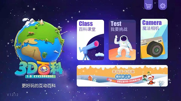 针对2~9岁的小朋友,提供生动、有趣的3D科普启蒙、常识教育。用户可以调起各种知识的3D资源,并触发互动,可以旋转、缩放观看3D模型、触发3D动画、收听百科介绍、了解相关百科冷知识,还可以发起测试挑战。百科内容板块丰富,比如:陆地、全球名胜,太空漫游等等;3D内容、知识点和测试,持续更新新内容!
