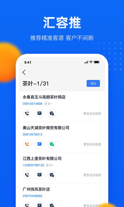 汇容客集智能客源信息和营销系统于一体,将营销拓客的全面整合、定向搜索、一键添加、产品推广、营销宝典等功能于一身,在提高业绩效率的同时,增强广告的推广,高效便捷省时省力省心。搜索到有价值的企业客户信息和商机信息,并且后期会不断拓展相关功能模块,努力为大家创造更好更全面的准确拓客信息软件。