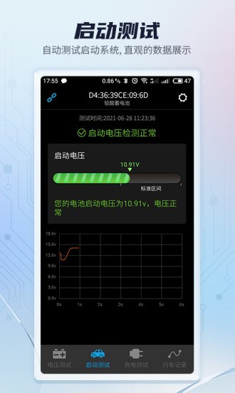 汽车电池检测工具,助力车主全方位了解汽车电池性能,实现安全用车;同步统计启动时间、行驶时间、熄火时间等,快速掌握行车记录,也帮助用户安全控车;如果检测到电池存在异常,系统自动标记并反馈,让车主在第一时间了解汽车电池的异常状态,进行电池维修保养。