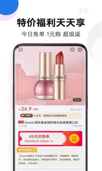 弹券APP网购更加实惠、经济,适合人群为所有喜欢上网购物的用户,是当前绝佳的省钱利器。可帮助你快速查找物美价廉的实惠商品,是学生党、上班族、家庭主妇、宝妈、自由职业者等省钱首选,天天都能让你过双11。