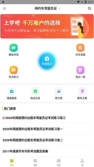 立即下载 网约车司机题库app 分类:办公学习 大小:33.7M 语言:中文 版本:v3.7.0安卓版 时间:2023-02-28 13:10:38 手机扫码免费下载 #网约车司机题库app简介 网约车司机题库app这是一看专为网约车司机们打造的考试题库学习软件,收集了历年真题训练,专题考试,查漏补缺,还有各种线上课堂测试,需要的用户就赶快下载吧!网约车司机题库官方介绍如果你想要成为一名合格的网约车司机,那么也需要好好的学习一番才行,专为网约车司机们打造的入职考试题目,在此各位想要做网约车的司机,可以根据科目、类型以及热点做题练习,并有模拟考场帮助大家通过各项考试。 题库app,网约车题库app,