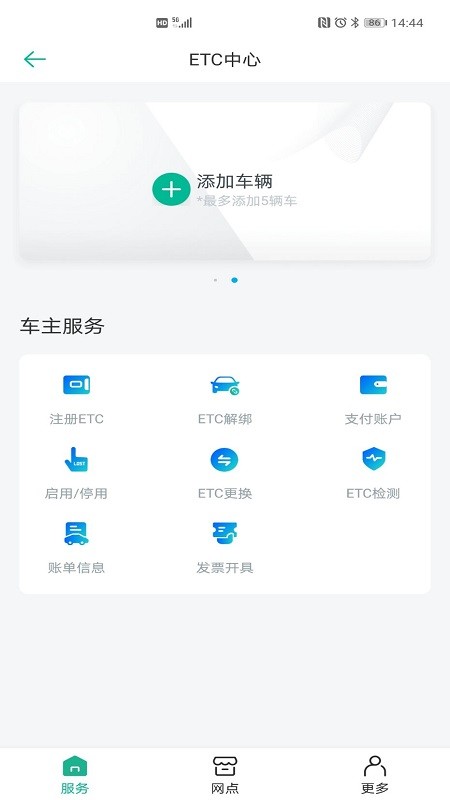 为车主提供线上办理申请以及管理ETC的服务,可以完成车辆ETC设备的注册、检测、账单查询、网点查询,车主可以自行注册车辆ETC设备,还能够为用户提供高速通行费的计算,计算通行费更准确。