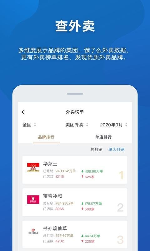 窄门餐眼,志在减少餐饮信息不对称、不及时、不准确和低效率获取的问题,希望成为餐饮人、投资人、供应商、加盟商、管理者、意向创业者的决策指南针。下一个蜜雪冰城、喜茶会是谁?茶百道全国每月的外卖销售情况?海底捞的每月开店速度、分布情况是什么?广州、上海哪里的门店更多,竞争更激烈?用窄门餐眼,通通都知道。