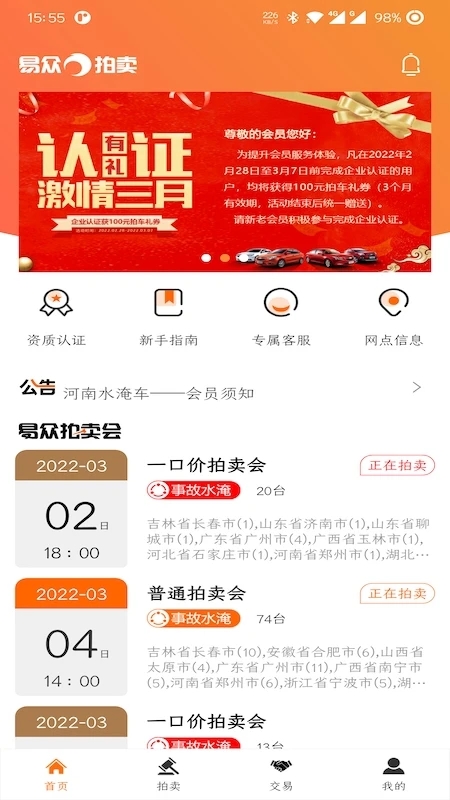 这个app主要提供事故车、水淹车的线上拍卖服务,方便客户一键出价、随时参拍。易众拍卖app将是做事故车的生意人手机里必不可少的app。