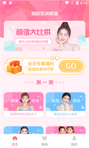 有了它用户不仅可以轻松测颜值,还为用户提供了脸型、皮肤、情商以及智商的测试,使用简单有趣,包含颜值测试、脸型测试、皮肤测试、颜值PK等多个人脸分析功能,只需拍摄或从相册选择一张照片,即可轻松测算照片中人物的脸型、颜值。