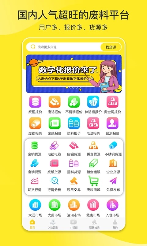 立即下载 爱废料网报价平台 分类:购物时尚 大小:56.1M 语言:中文 版本:v5.0.0安卓版 时间:2023-04-06 13:37:27 手机扫码免费下载 #爱废料网报价平台简介 爱废料网报价平台是一款处理废料的优质软件,软件内拥有各行各业所需要的废料资源,市场大、需求多、用户广,你可以在此找寻自己想要的资源,价格一般会比完整资源便宜许多,同时还可以将你不需要的废料上架,经济又实惠。爱废料网app官方介绍我们秉承“为您处理废料创造很大价值”的核心理念,坚持“以信为尊”的诚信交易体系,建立了废料行业全新的产业链共享生态圈。拥有对废料行业近20年的专业沉淀和丰富经验,并结合强大的互联网技术创新能力,实现了传统废料与互联网技术的深度创新融合! 交易app,环保app,