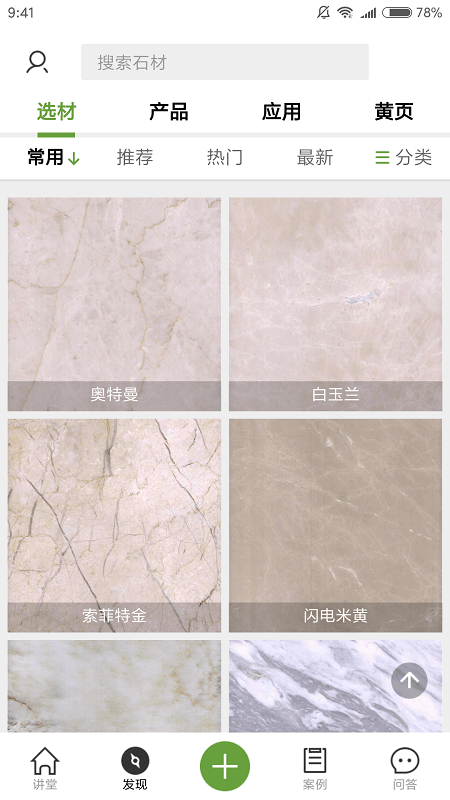 石通记APP是一款以石材为基础的信息共享平台,致力于让设计师找到设计灵感,让交易双方找到自己需要的信息;平台推出讲堂板块,在这里用户可以学习到各种与石材有关的知识,比如石材设计、制作、装修、鉴赏等,让用户对石材的了解能够更加深入;平台推出发现板块,在板块中用户可以发现很多没有见过的石材,同时也能够了解到该石材的基本资料信息,全面拓展用户的知识面
