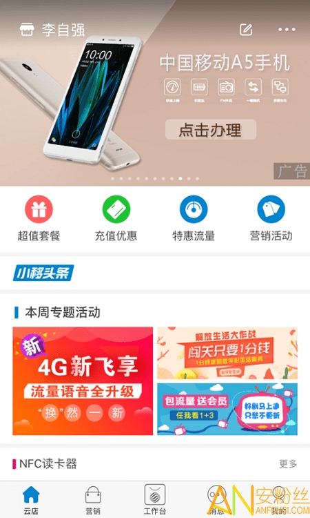 智汇随身厅app是一款一线员工和合作伙伴进行客户服务和互联网营销的工具,提供话费充值,套餐、流量包、优惠活动等基础通信服务能力,是社会渠道合作伙伴的4g终端采购、销售、售后服务一体化平台,是整合山东移动全产业链和异业商圈资源的互联网营销生态平台。快来安粉丝安卓网下载体验