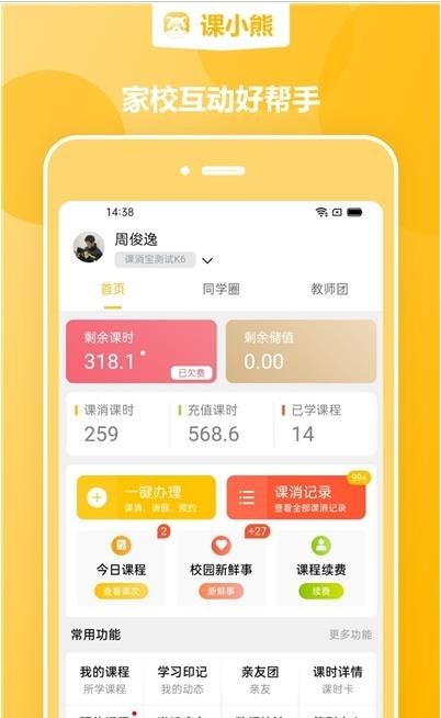 课小熊app是一款专业智能化教学管理类软件,在平台中支持在线管理和统计孩子们的出勤率以及各种服务功能,同时孩子们还能随时查看当天的课程表,以及学生情况,实时来掌握孩子们的学习状况,不断的提升孩子们的学习成绩,有需要的用户一起来看看吧!