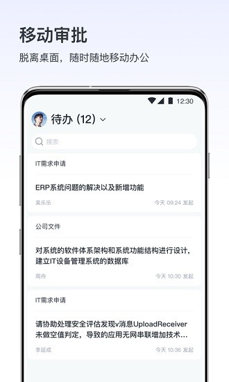 整合即时沟通、日程管理、移动审批、邮件、工作台等功能于一体,内部员工的各类信息都可以统一的获取,大家可以展开互动以及交流,免打扰以及专属提醒的功能,让你办公无忧!为企业打造高效沟通、协同和管理的智能移动办公平台,实现数字化新工作方式。