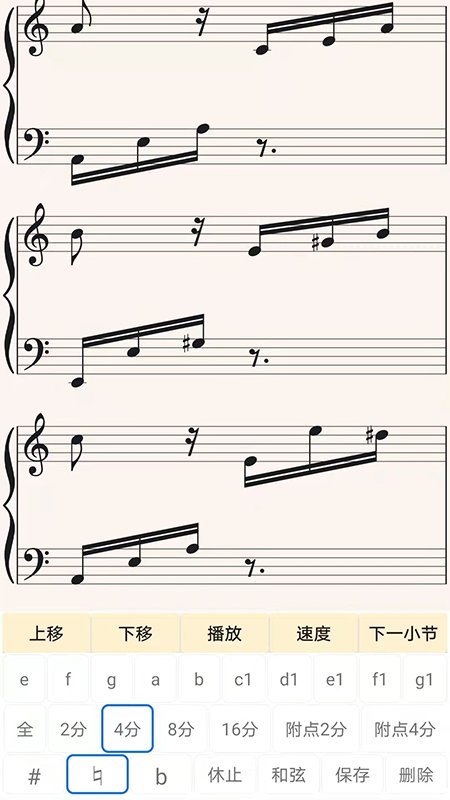 可直接通过软件钢琴键盘作曲,并显示成标准的五线谱,同时还可以播放曲子、修改曲子的速度、将曲子保存成图片等。