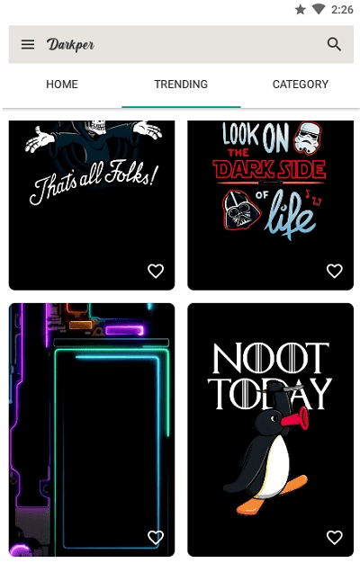 Darkper是一个现代的壁纸应用程序的黑色壁纸和背景在超级高的质量(HD,FHD,QHD和4K UHD)。