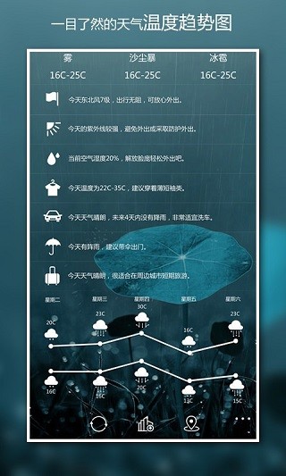 最纯粹的唯美天气应用留住内心对美好的向往,想要更好的了解未来天气情况的话可以来使用,还能在桌面添加个性化的动态效果,看起来很养眼也很特别,预报的情况也是挺精准的,能查看全国各地的天气情况。