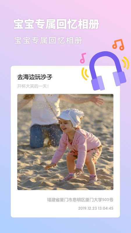 宝宝成长的每一个瞬间对于父母来说都弥足珍贵,亲宝宝生活记录,记录宝宝成长的每一个瞬间,留住美好回忆,牙牙学语会叫爸爸妈妈,蹒跚学步......亲宝宝成长记录和你记录宝宝成长的点点滴滴。孩子的成长历程是很值得回顾的,用户不经意间的上传回头看满满的都是回忆,非常的具有纪念意义。