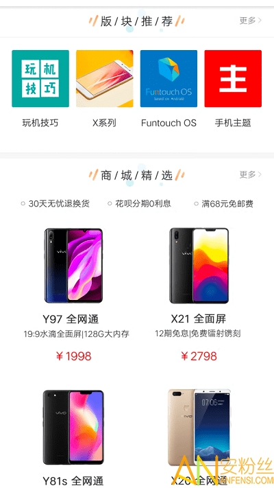 vivo官方商城软件是一款VIVO官网商城手机客户端,用户可以在这里购买VIVO手机及配件,专享福利等你来领取,还有海量优惠券等你来抢!心动的用户还在等什么,赶快来安粉丝手游网下载吧!