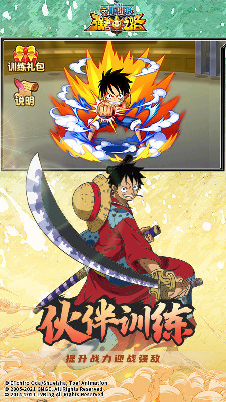 东映动画正版授权,ONE PIECE冒险情结燃情继续。经典动画题材结合经典手游玩法,双经典模式引爆航海王强者之路。