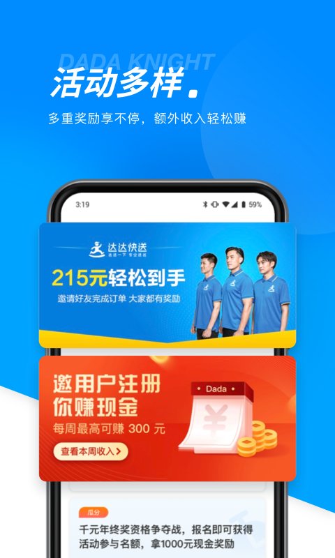 7、不定期达达骑士奖励和关怀活动,不但赚钱多,还有成就感。