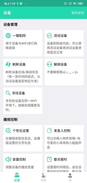 测试设备:测试功能可用于测试设备的广播功能是否正常;