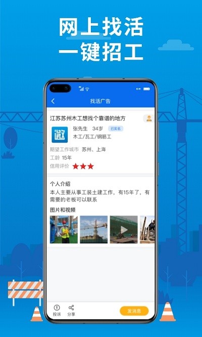 “邀工网”是平台型互联网产品,旨在打造线上建筑业劳务市场。软件内是有超多职业可以让你选择,不管的水电工还是其他的工种都能够轻松在这款软件内找到。有利于优化配置劳务资源,吸引年轻人从事建筑业,以及助力培育新型建筑产业工人。