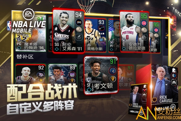 根据赛程合理管理球队,亲手制定球队战术阵容,自由搭配巨星组合,开启NBA冠军王朝征途。