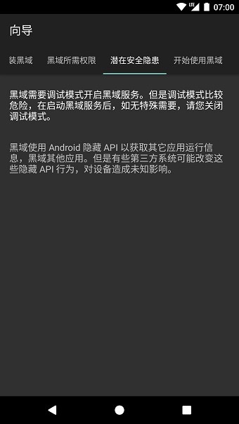 6、手机进入黑域,就可以正常使用了,手机重启需要重新配置